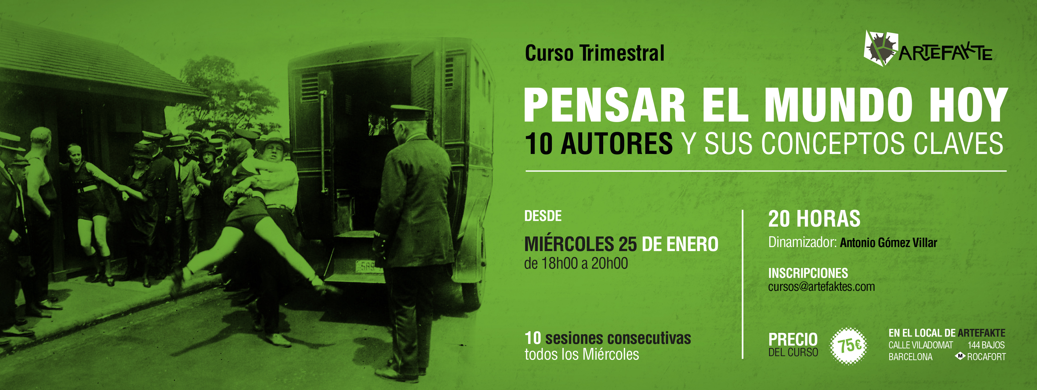 Desde el miércoles 25, y durante 10 semanas (todos los miércoles) impartiré este curso en Artefakte “Pensar el mundo hoy. 10 autores y sus conceptos fundamentales”