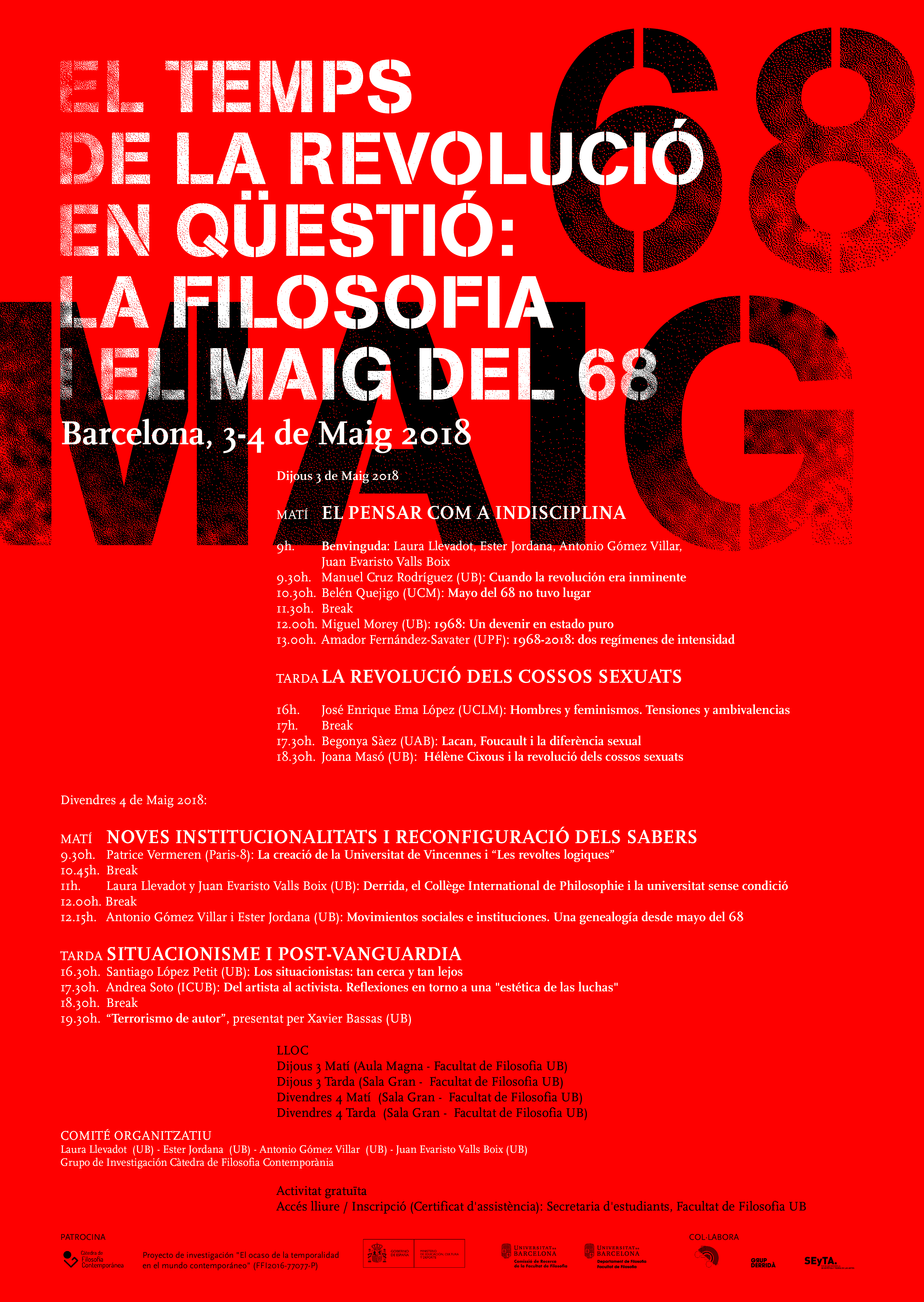 Jornades “El temps de la revolució en qüestió: La filosofia i el maig del 68” April 24, 2018 ~ Antonio Gómez Villar Los próximos 3 y 4 de mayo, organizamos estas jornadas en la Universitat de Barcelona, “El temps de la revolució en qüestió: La filosofia i el maig del 68”, en las que también participo con una ponencia. Actividad gratuita. Share this: Click to share on X (Opens in new window) X Click to share on Facebook (Opens in new window) Facebook Like Loading... Related