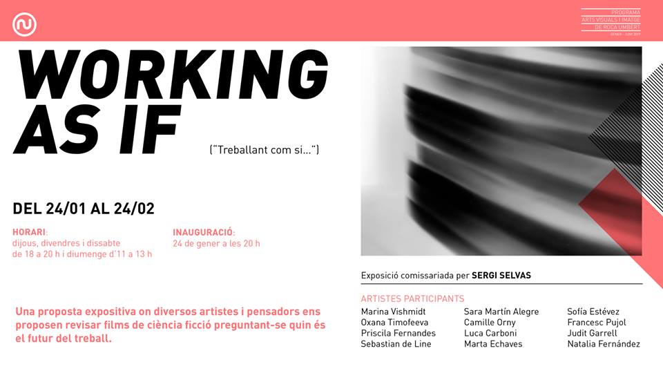 El próximo jueves 7 de febrero daré la conferencia “La era del postrabajo: la excepcionalidad como dispositivo de gobierno”, en el marco de la exposición comisariada por Sergi Selvas, “Working as if”, en Espai d’Arts Roca Umbert de Granollers. Se trata de una propuesta expositiva donde diversos artistas y pensadores proponen revisar películas de ciencia ficción preguntándose por el futuro del trabajo.