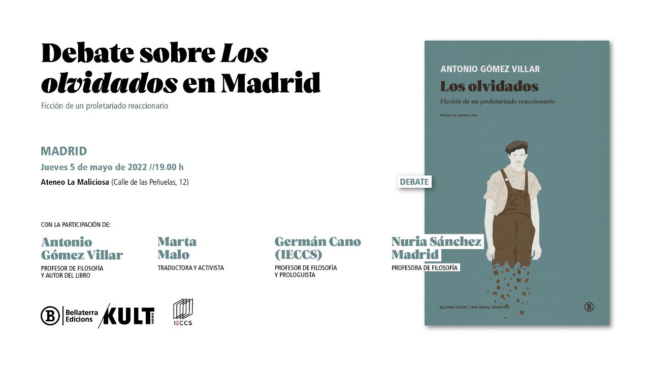 El próximo jueves 5 de mayo, a las 19.00, presentamos en el Ateneo La Maliciosa de Madrid Los olvidados. Ficción de un proletariado reaccionario (Bellaterra, 2022). Toda la información del acto pinchando aquí.