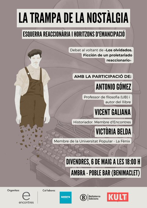 Las amigas y amigos de “Encontres” han organizado este debate – La trampa de la nostalgia – en torno al libro Los olvidados. Ficción de un proletariado reaccionario (Bellaterra, 2022), junto a Vicent Galiana y Victòria Belda. Será el 6 de mayo a las 18.00 en Ambra – Poble Bar (Benimaclet).