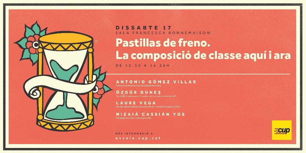 Els propers 16, 17 i 18 de setembre CUP ha organitzat aquesta interessant Escola d’estiu. Serà a la Nau Bostik (Barcelona). Us animo que mireu el programa i us inscriviu. El dissabte 17, a les 12.30, Özgür Günes, Laure Vega, Nizaià Cassian i jo estarem dialogant sota un títol que promet… “Pastillas de freno. La composició de classe aquí i ara”. Molt agraït a CUP per l’organització i la invitació.