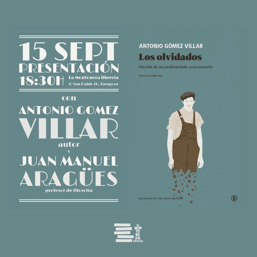 El próximo jueves 15 de septiembre presentaré el libro Los olvidados. Ficción de un proletariado reaccionario (Bellaterra, 2022), en la librería La Montonera de Zaragoza (Calle San Pablo, 26). Será a las 18.30 y me hace mucha ilusión el diálogo con Juan Manuel Aragüés. Pincha aquí para ver toda la información del acto