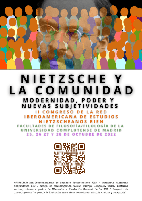 Tremendo programa que han armado para el II Congreso internacional de la Red Iberoamericana de Estudios Nietzsche RIEN – Nietzsche y la comunidad. Modernidad, poder y nuevas subjetividades. Creo que vamos a disfrutar mucho de los paneles y las mesas. Del 25 al 28 de octubre en la Universidad Complutense de Madrid (UCM). El viernes 28 de octubre presentaré la ponencia “F. Nietzsche en la Alt-right: una apropiación distorsionada”. Pincha aquí para ver todo el programa