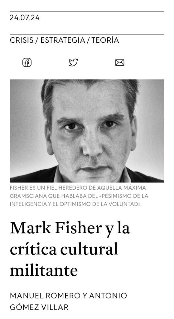 La revista Jacobin ha publicado en castellano el prólogo que Manuel Romero y un servidor escribimos para la edición en catalán de Contra el realisme capitalista, comunisme àcid:Antologia de K-Punk, en la editorial Manifest. Pincha aquí para leer el texto