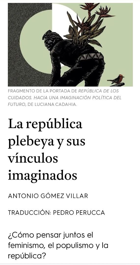 El texto que sigue es una reseña de República de los cuidados. Hacia una imaginación política de futuro, de Luciana Cadahia (Herder, Barcelona, 2024), un magnífico libro articulado en torno al interrogante ¿Cómo pensar juntos el feminismo, el populismo y la república? Pincha aquí para leer el texto y pincha aquí para acceder al libro de Luciana Cadahia