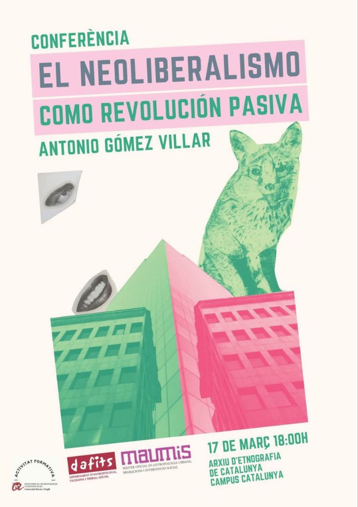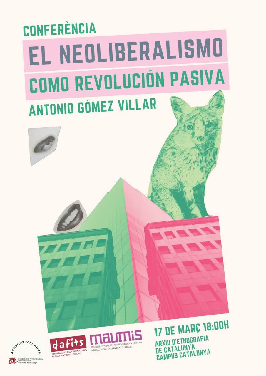 Conferencia – El neoliberalismo como revolución pasiva March 18, 2025 ~ Antonio Gómez Villar Conferencia en la Universitat Roviri i Virgili Share this: Click to share on X (Opens in new window) X Click to share on Facebook (Opens in new window) Facebook Like Loading... Related