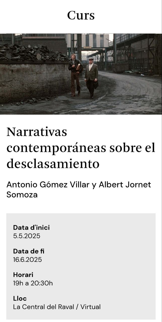 Albert Jornet y un servidor realizaremos el curso “Narrativas contemporáneas sobre el desclasamiento” en La Central del Raval. El curso adoptará una perspectiva y metodología heterogénea, que conjuga la filosofía y la teoría de la literatura, en un formato de curso en el que los dos profesores nos iremos alternando, aun cuando ambos participaremos en todas las sesiones. Se impartirá en modalidad híbrida, tanto presencial como virtual. Toda la información sobre el curso aquí