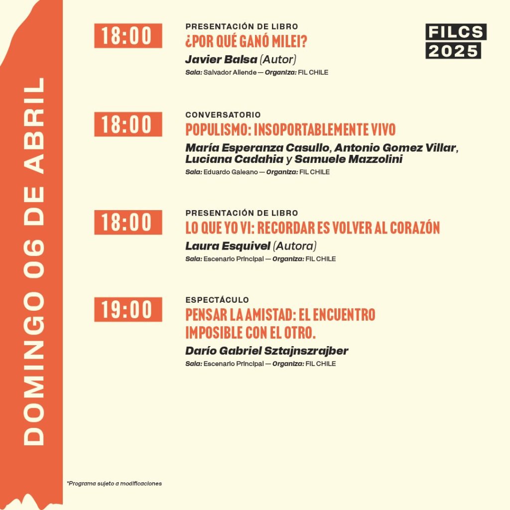 En el marco de la Feria Internacional del libro de Recoleta en Santiago de Chile, el domingo 6 de abril María Esperanza Casullo, Luciana Cadahia, Samuele Mazzolini y un servidor participaremos en el conversatorio “Populismo: insoportablemente vivo”. Toda la información de Fil Chile en este link