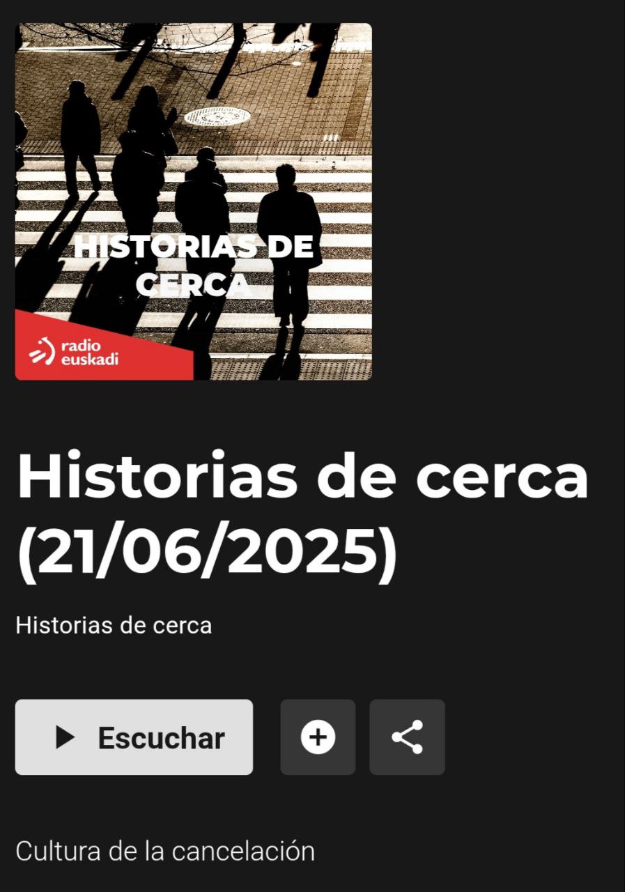 Muy interesante la entrevista que me realizaron en el programa “Historias de cerca” de Radio Euskadi sobre la cultura de la cancelación. Pincha aquí para leer el programa, a partir del minuto 23.