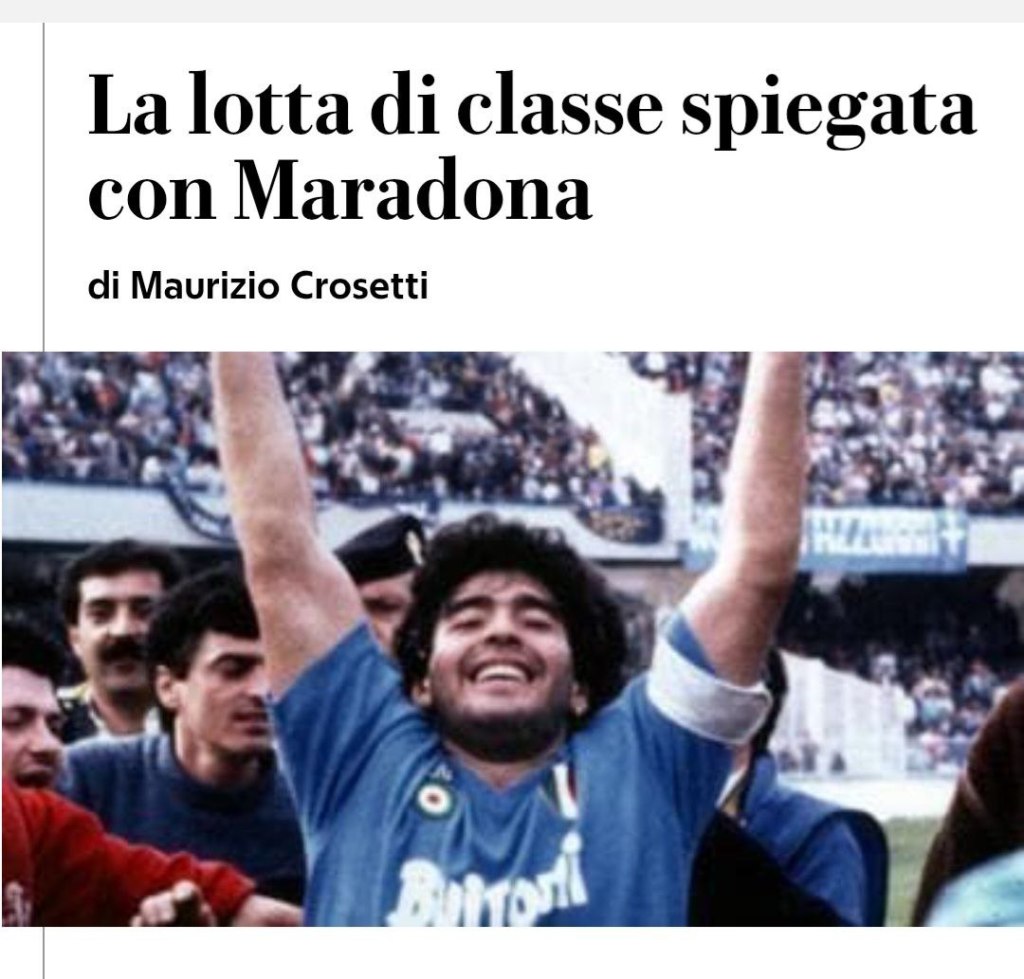 Bellisima recensione di Maurizio Crosetti (La Repubblica), “La lotta di classe spiegata con Maradona”, di Maradona, mito plebeo (Tamu Edizioni). Pincha aquí para leer el texto