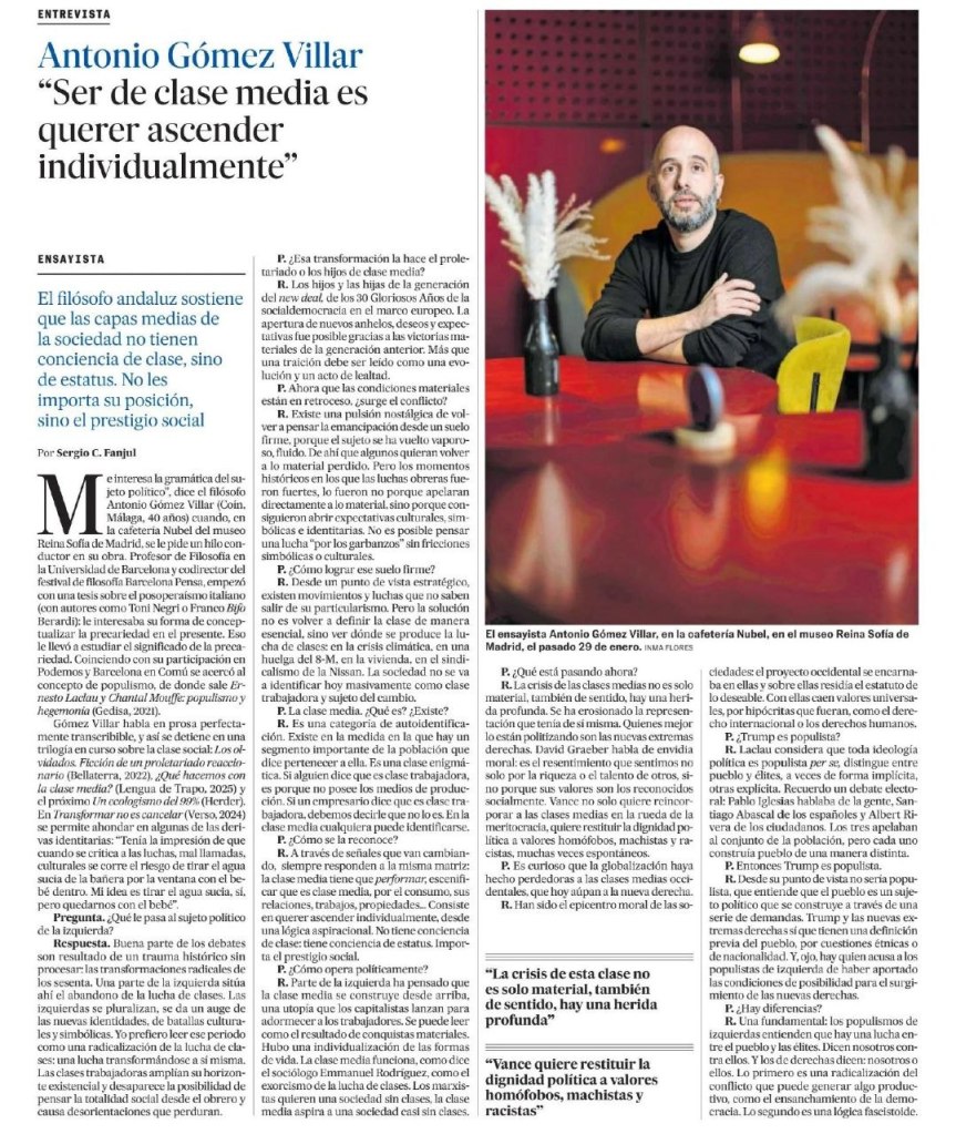 Entrevista en El País April 1, 2026 ~ Antonio Gómez Villar La entrevista en El País Ideas en formato digital Share this: Share on X (Opens in new window) X Share on Facebook (Opens in new window) Facebook Like Loading... Related