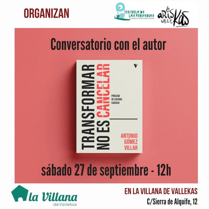 La Fundació Sentit Comú ha organitzat aquesta presentació del llibre Transformar no es cancelar (Verso), amb la Laura Macaya. Moltes ganes d’aquest diàleg sobre cultura de cancel·lació, transformació política i justícia feminista. Serà el divendres 19 de setembre, a les 18.30 h. a l’Ateneu Àgora (Carrer Consell de Cent, 141). Tota la informació en aquest link