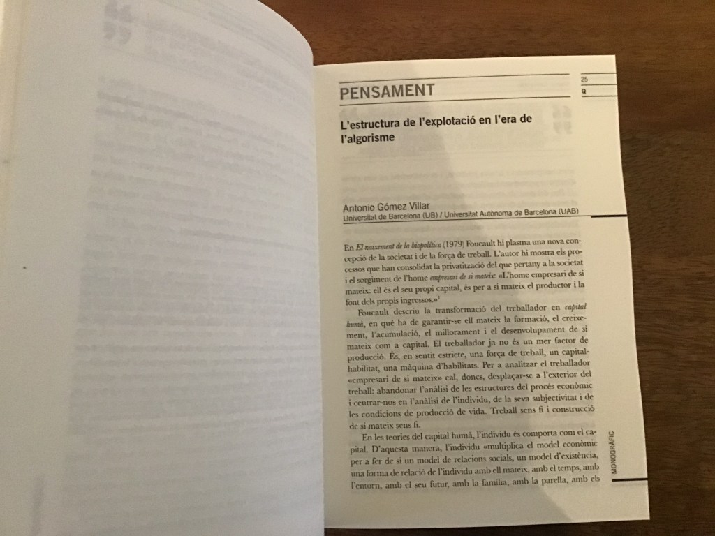 Acaba de salir publicado el último número de la revista “Qüestions de vida cristiana”, un número monográfico dedicado a “El futur del treball”, e incluye mi artículo “L’estructura de l’explotació en l’era de l’algoritme”. En breve se podrán adquirir los ejemplares de la revista, pinchando aquí