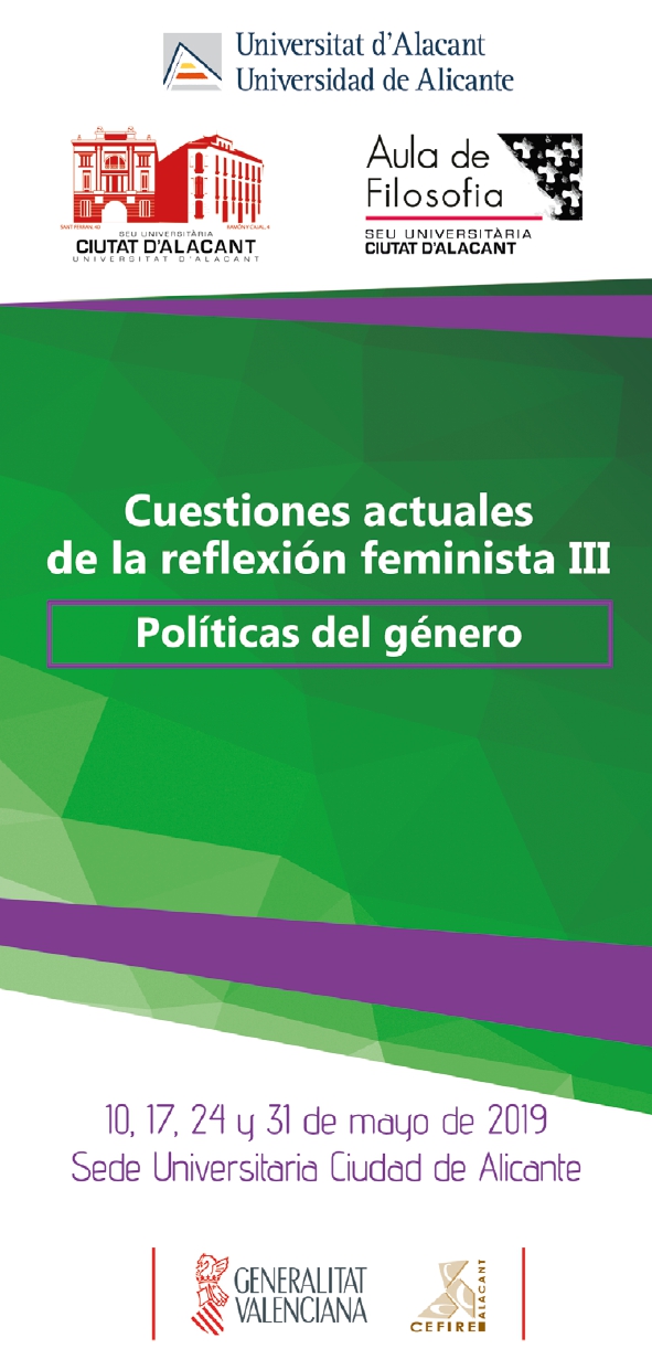 El próximo 10 de mayo daré la conferencia “El feminismo como fisura de un orden: quiebre del mandato de masculinidad”, en el marco del curso “Cuestiones actuales de la reflexión feminista III – Políticas de género”, en la Universitat de Alicante, organizado por Elena Nájera y Antonio de Murcia. Compartiré sesión con José Luis Moreno Pestaña, quien intervendrá con la conferencia “Cuerpo y explotación”. También participan en el curso Remedios Zafra, Silvia L. Gil, Nuria Sánchez Madrid, David Soto, Ángeles Jiménez Perona y Marta Nogueroles.